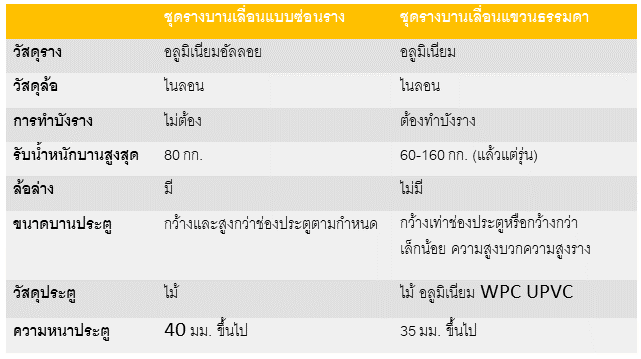 เปรียบเทียบชุดรางบานเลื่อนแบบซ่อนราง ของดีดี ฟิตติงส์ แอนด์ ทูลส์ กับ ชุดรางบานเลื่อนแขวนธรรมดา
